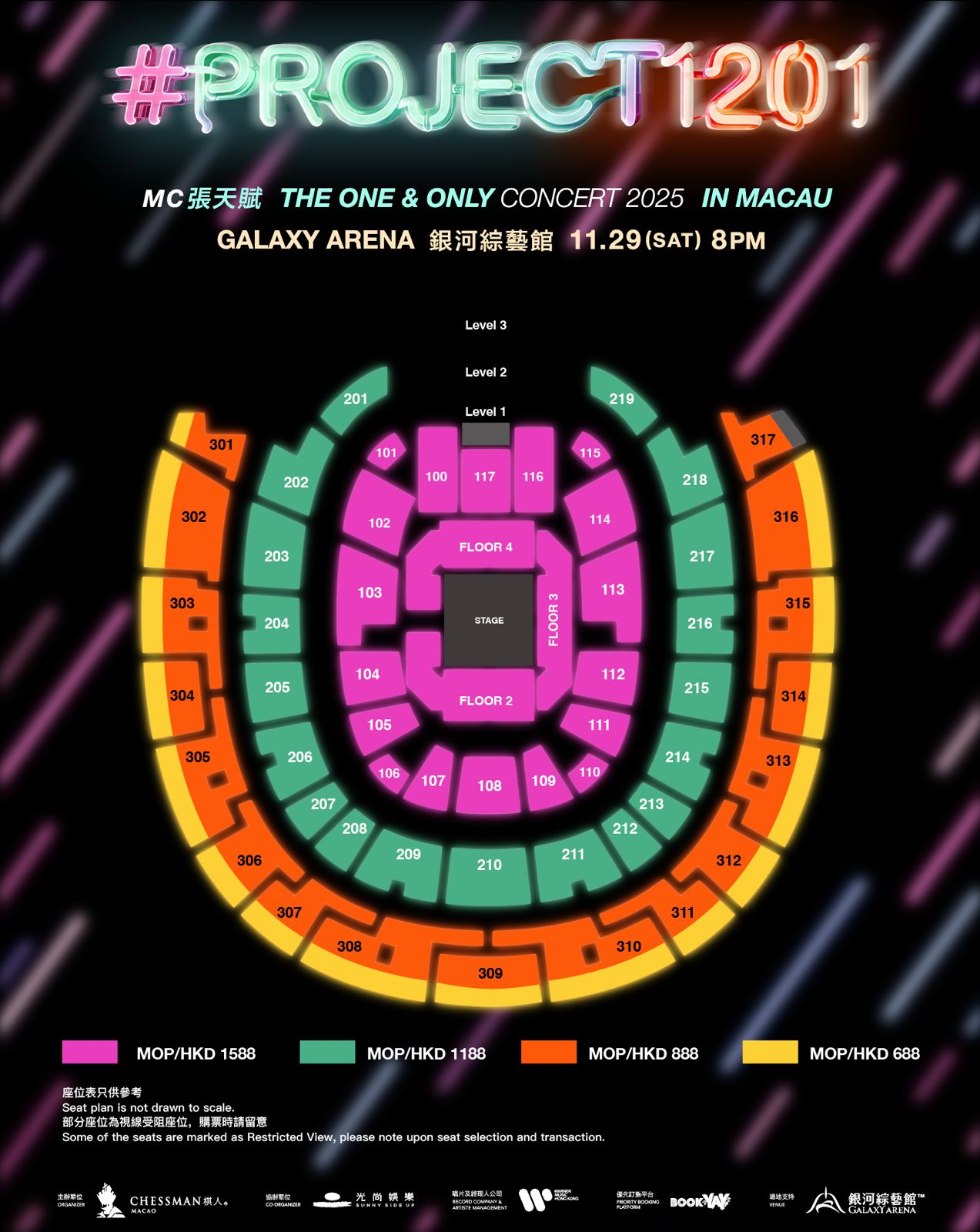 Ticket Price: | MOP/HKD 1588 / 1188 / 888 /688 *The settlement currency shall be based on respective ticketing platforms. |